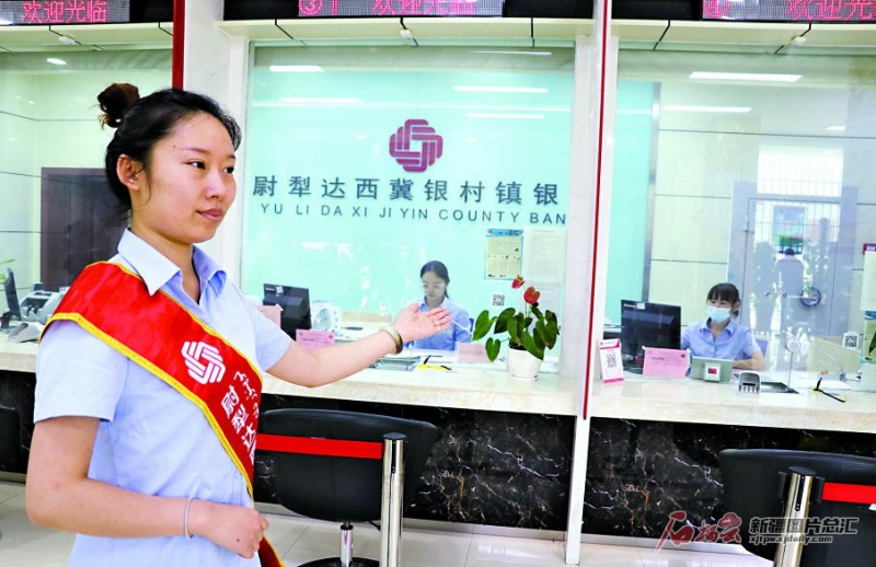 尉犁达西冀银村镇银行工作人员为客户提供周到的服务(7月12日摄)。