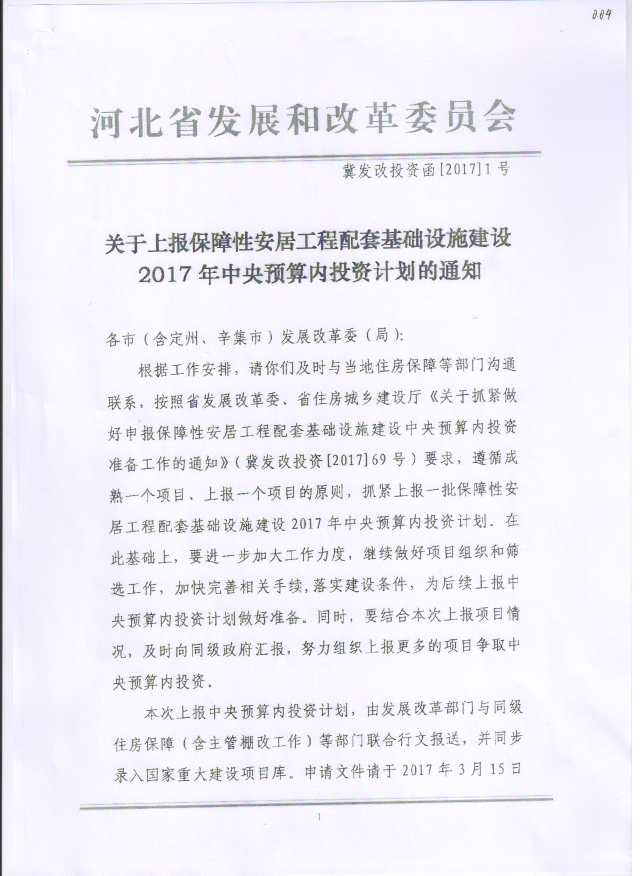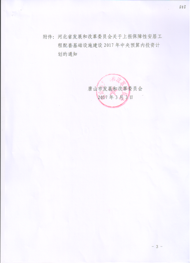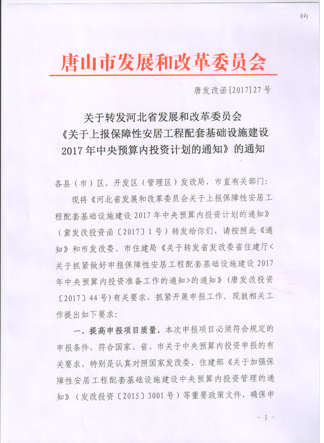 唐山市发改委关于转发河北省发展和改革委员会《关于上报保障性安居工程配套基础设施建设2017年中央预算内投资计划的通知》的通知